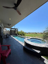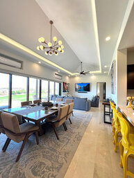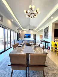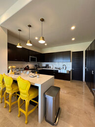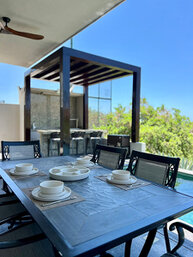 Cuenta con Wi-Fi, aire acondicionado en las recamaras y zonas comunes, cocina equipada, comedor principal para 8 personas, asador, camastros y área de lavado.